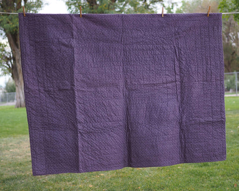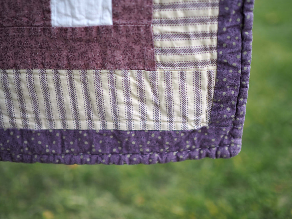 If you want a classic handmade quilt for your bedroll, this is the one for you! There are patchwork squares with a lovely floral border. Throw blanket size, excellent used condition.