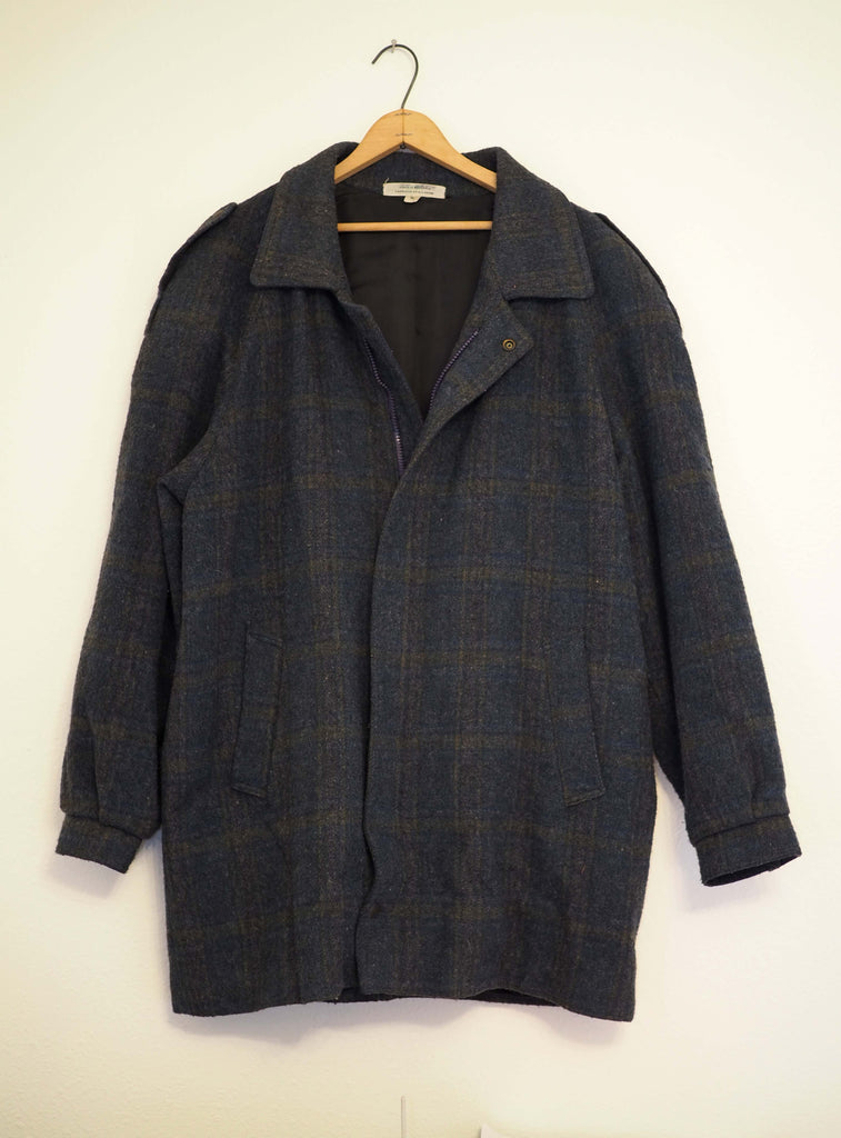 Vintage Wool Blend Plaid Coat