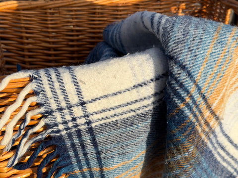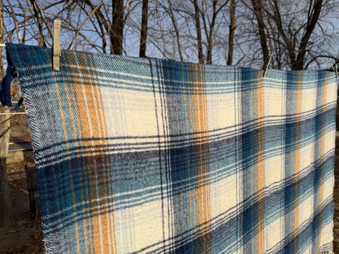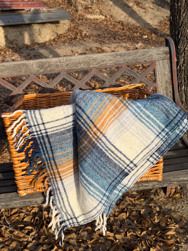 Wool Blend Blue Plaid Bedroll Blanket