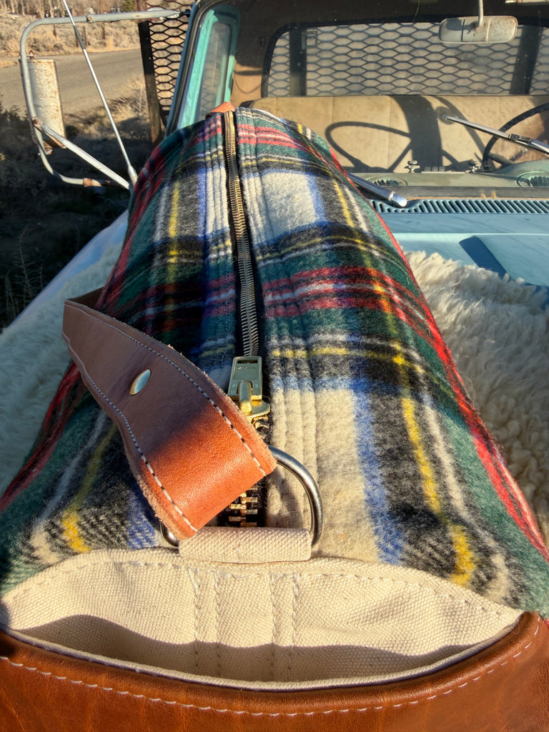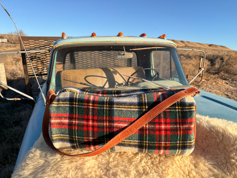 Meet the Highland Heirloom bag, made from a vintage 100% scottish wool tartan, this bag is one of a kind. Hand-crafted in our shop in Idaho, this bag blends heavy-duty materials with timeless cowboy character, making it the perfect go to bag.